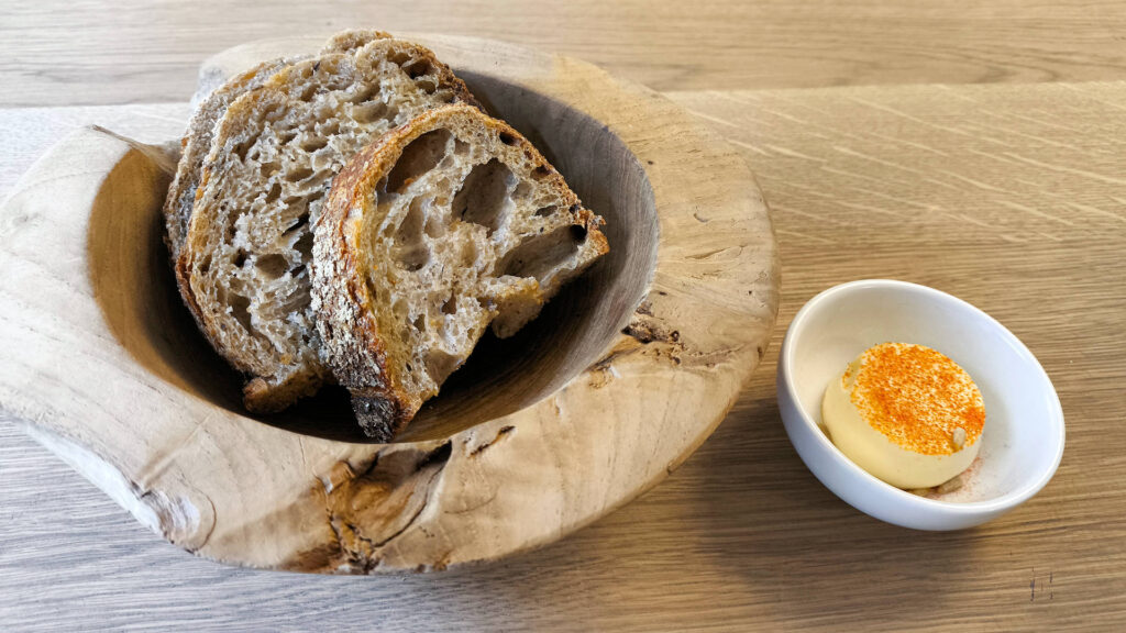 House-baked bread arrived with whipped butter dusted in smoked paprika. Super-tasty and fresh. There was no amuse-bouche, but none had been promised.