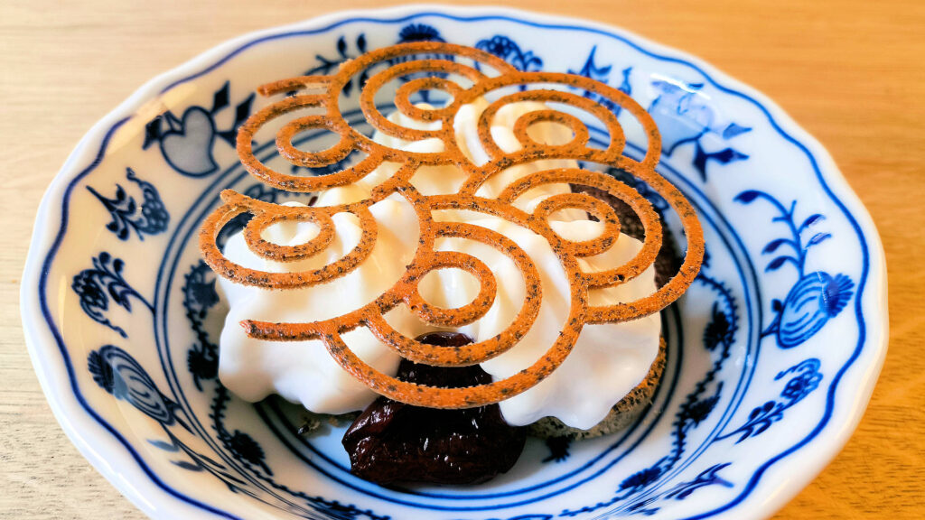 Aesthetically, it was charming—topped with an elegant poppy-seed tuile. But the cream was too sweet, the cakes themselves faceless, and the honey only compounded the dominant sweetness. I couldn’t find the nuts, though the cherries did bring a measure of contrast thanks to a little sourness. Overall, I fear I wasn’t Slavic enough to appreciate this either. Another disappointment.